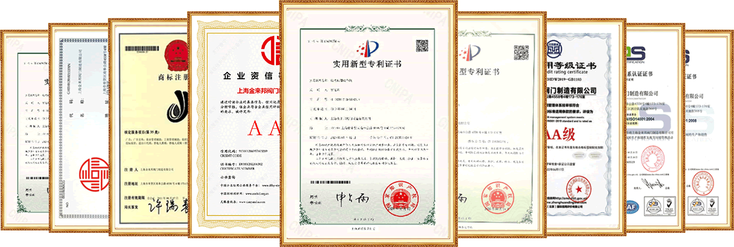 金來邦閥門全面推行ISO 9001質(zhì)量管理體系、ISO 14001環(huán)境管理體系、OHSAS 18001職業(yè)健康安全管理體系、TS(特種設(shè)備生產(chǎn)許可證)體系、消防產(chǎn)品CCC(國家強(qiáng)制性產(chǎn)品認(rèn)證)、衛(wèi)生許可批件、節(jié)水產(chǎn)品認(rèn)證等相關(guān)行業(yè)認(rèn)證。公司憑借十余年的市場(chǎng)經(jīng)驗(yàn),在業(yè)內(nèi)外贏得了廣泛的贊譽(yù)和良好的口碑。